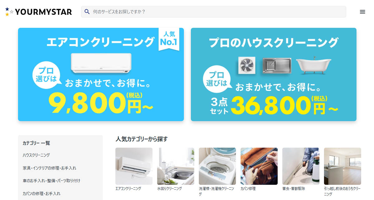 | マッチングサービス | くらしのマーケット ユアマイスター |